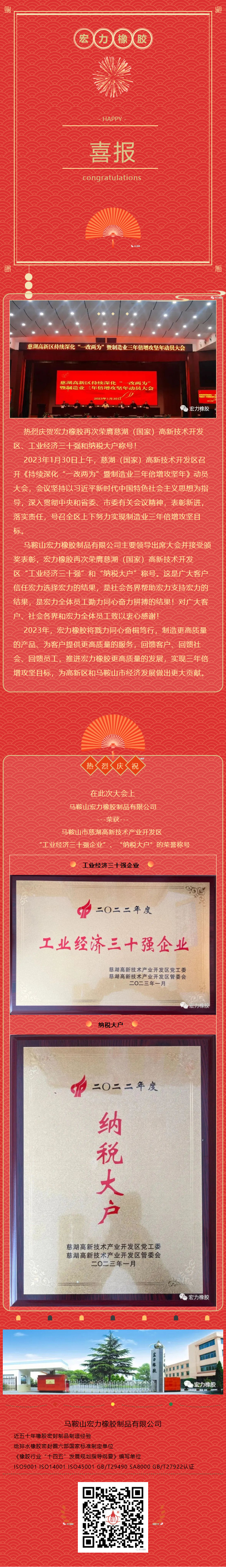 熱烈慶賀宏力橡膠再次榮膺慈湖(國(guó)家)高新技術(shù)開(kāi)發(fā)區(qū)、工業(yè)經(jīng)濟(jì)三十強(qiáng)和納稅大戶稱號(hào)!